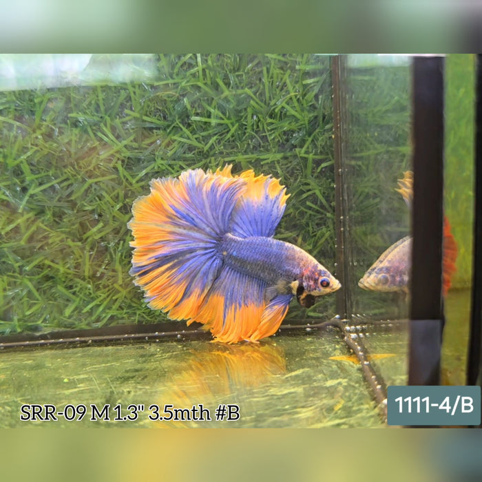 Live Male Betta Yellow blue Grizzle Halfmoon Rosetail (SRR-09) What you see what you get!