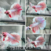 Live Male Betta Purple pink Grizzle Dumbo big ear Halfmoon (Sky-332) S101 High quality What you see what you get!!