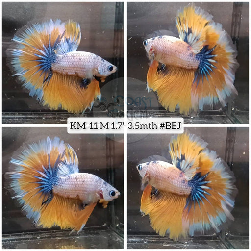 XLive Male Betta Yellow blue mustard Butterfly Halfmoon (KM-01) High quality what you see What you get!