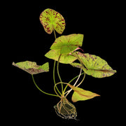 The tiger lotus is a type of water lily commonly used in aquascaping. Its bright red leaves can grow into a large and stunning specimen when planted along with green stem and carpet plants. Under high light and with the addition of CO2 and fertilizers, the leaves can turn deep red with speckles of orange and brown throughout. Although it can grow in lower light, the leaves tend to be more drab and will turn bronze colored. This plant can send leaves all the way to the surface like other water lilies.