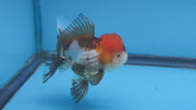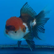 This Premium Thai Oranda Tri-Color Goldfish is a 3.5-inch male featuring a vibrant blend of red, white, and black across a compact, well-proportioned body. With a developing wen and graceful finnage, he’s a beautiful young specimen with great potential.