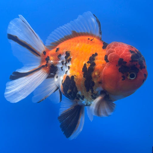 (NOK-179) Thai Jumbo Tri Color Orchid Tail Oranda 5.00 inch Body Female 10 Months Age
