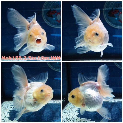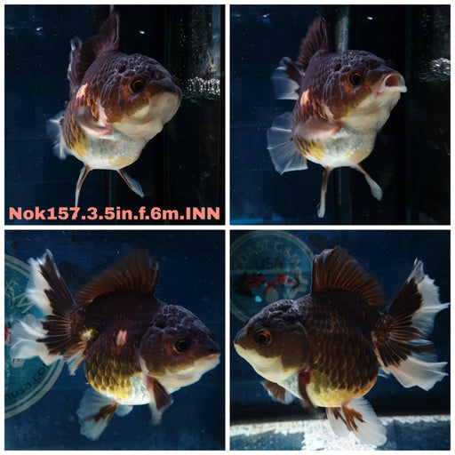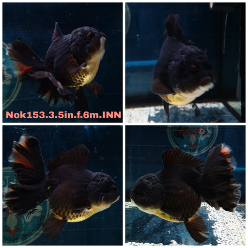 (NOK-179) Thai Jumbo Tri Color Orchid Tail Oranda 5.00 inch Body Female 10 Months Age