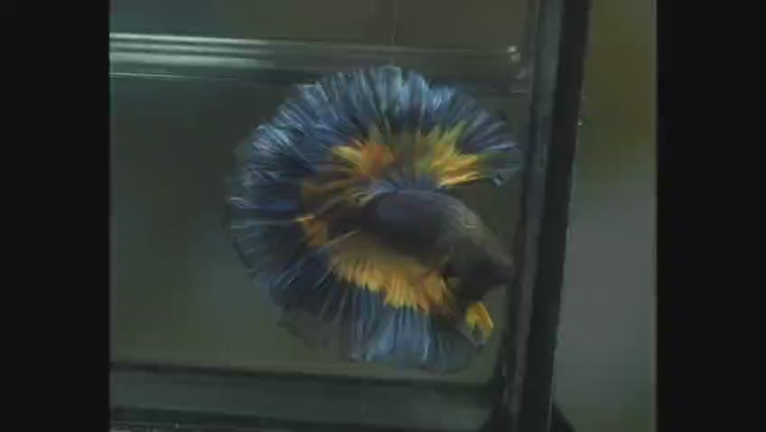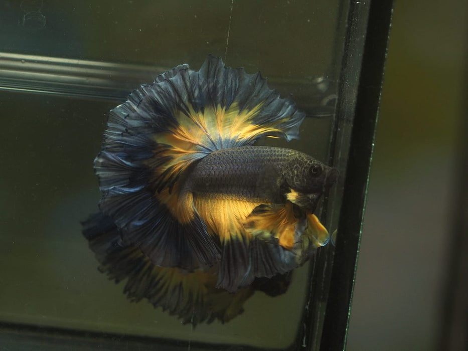 Live Male Betta Yellow black Mustard Over Halfmoon Rosetail (MKP-565) S265 High quality What you see what you get!!