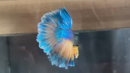 Live Male Betta Yellow blue mustard Halfmoon Rosetail (TNK-550)High quality what you see what you get!!