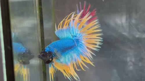 Live Male Betta Yellow Blue Mascot Spider Crowntail (TNK-A67) S234 High quality What you see What you get!!