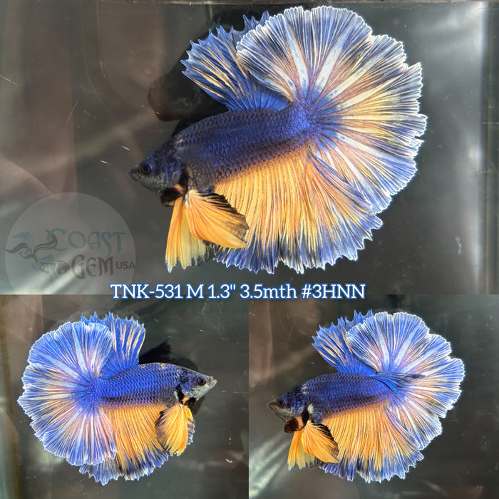 Live Male Betta Yellow blue mustard Over Halfmoon Rosetail (TNK-531)High quality what you see what you get!!