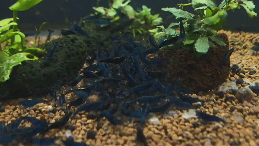 Blue Diamond Shrimp   The deep blue coloration and transparency of these shrimp is reminiscent of a multifaceted sapphire. Not only are these shrimp gorgeous to behold, they also clean your tank and are a blast to watch!Ê They are very active and breed extremely quickly. These are the same species as Red Cherry Shrimp and Neon Yellow Shrimp (Neocaridina davidi, formerly Neocaridina heteropoda). In fact, these shrimp were bred from Shoko and Chocolate Shrimp, which are a deep brown variant of the Neocaridina davidi species. Care requirements for Blue Diamond Shrimp are essentially the same as Red Cherry Shrimp, and they are just as prolific. These are freshwater shrimp and are very popular for planted tanks and community tanks. Many people use them in large aquariums for waste management and algae control. We generally ship young adult shrimp that are already of breeding age (so around 1/2 inch to 3/4 inch in length). They will reach about 1 inch in length as fully grown adults. Some younger shrimp have not reached their full potential yet and will become a deeper blue color as long as they are comfortable in the tank.