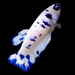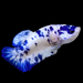 The marble dot moo cows half a full white undertone with blue dots. The dark blue coloration against the white makes this fish stand out and so fun to look at.