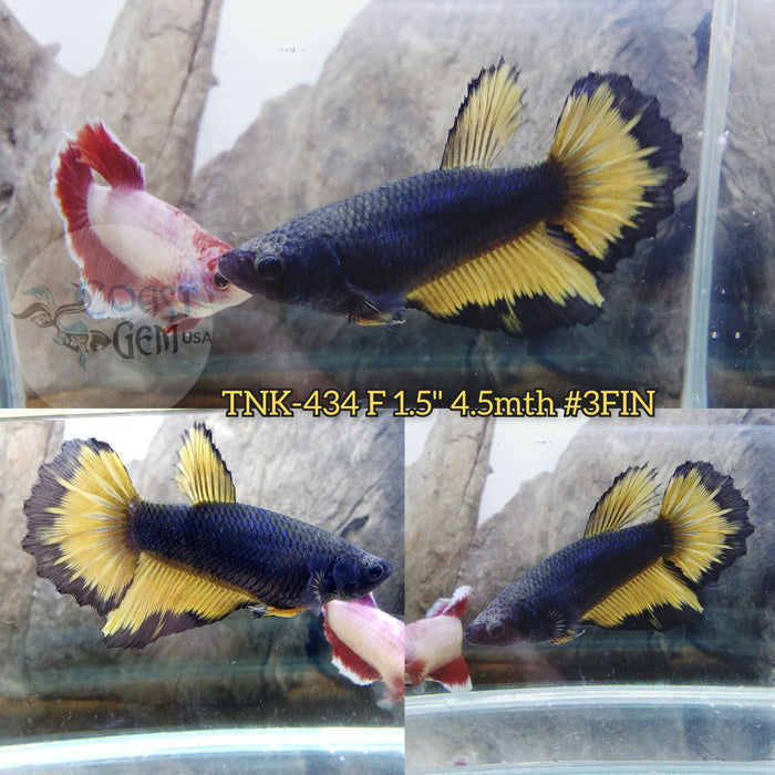 Live Female Betta Black Yellow mustard Halfmoon (TNK-434) S342 what you see what you get!!