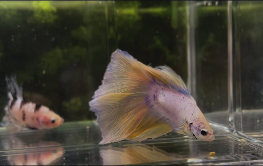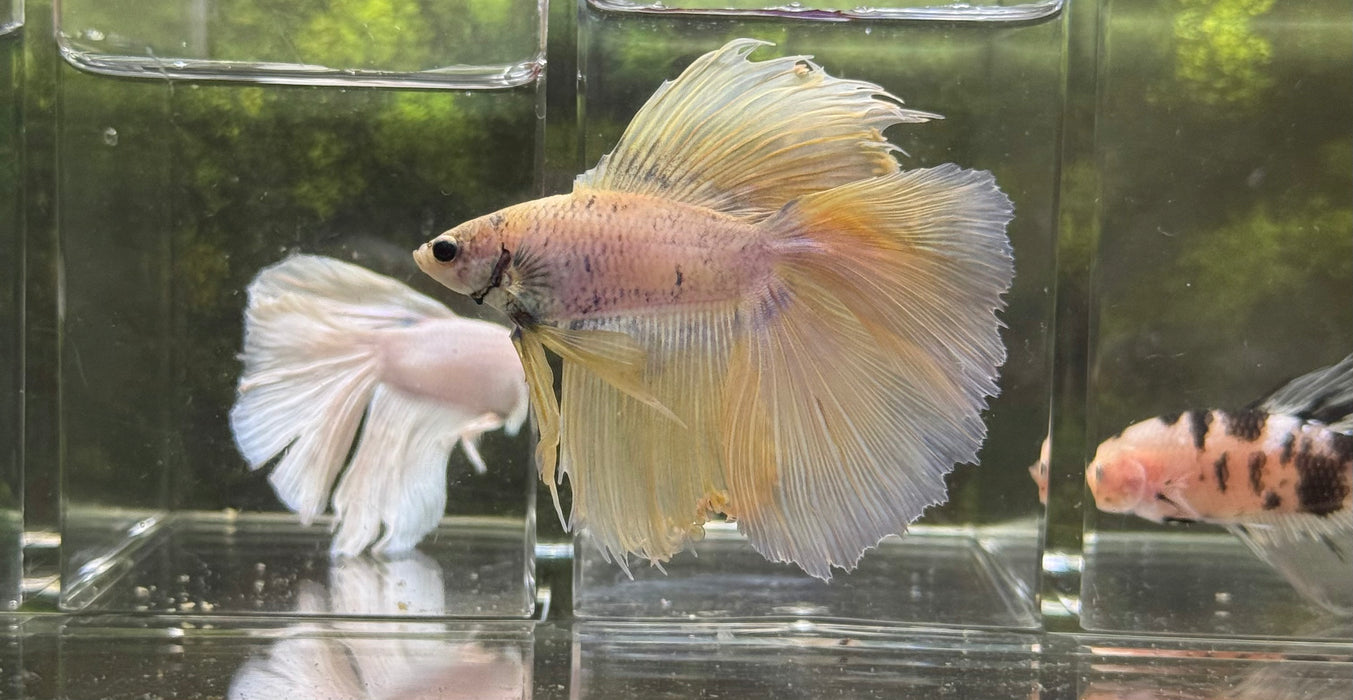 LIVE FISH HIGH GRADE FANCY YELLOW PASTEL COLOR DOUBLE TAIL HALFMOON MALE BETTAS LIGHT TONE S281(LLL-4005