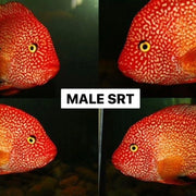 The Red Texas Cichlid is a hybrid fish that was developed by the cross breeding of Flowerhorn Cichlid (Cichlasoma sp.) and Texas Cichlid (Herichthys cyanoguttatus), thus does not exist in the wild. In a sense the Red Texas Cichlid is a second generation hybrid, as the Flowerhorn Cichlid with which it is cross bred is already a hybrid produced by cross breeding the Trimac Cichlid with other various Central American Cichlids. As Flowerhorn cross breeding began in the mid 80s, they have since been bred with multiple other species and line bred for coloration and pattern, which has made them almost indistinguishable from their wild origins.